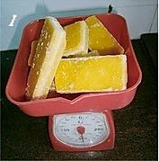 冰片糖称重,一共是500克,取出其中的80克留着做馅料用,剩下的420克用来煮糖水。