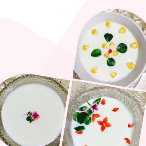 来个最终成品吧,用的家里的小花花做的样子,如果大家喜欢红豆,芒果口味,可以自己添加。我吃原味的。(刚蒸完上面还有点奶状的,需要凝结,不要着急。凉上一个多小时就好啦,如果喜欢吃凉的,可以放到冰箱,第二天吃起来也很棒,凉凉的,甜丝丝,我这个不爱甜食的人都喜欢的不得了,是不是因为自己做的原因呢