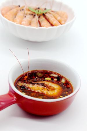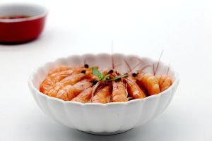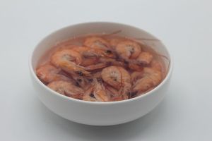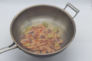 坐锅烧水至开放姜片,然后加入处理好的基围虾。
