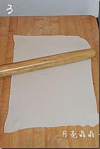 折好的饼用擀面杖再轻轻擀一擀,弄的稍微薄一点