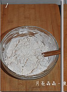 面粉加入水中,边倒边用筷子搅拌成大雪片状,不烫手时和成面团,边揉边拍些凉水,揉匀后备用
