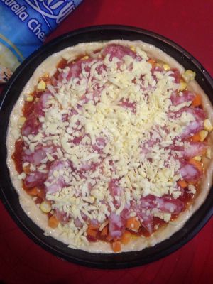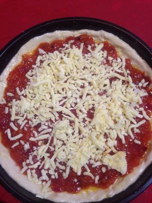 铺上一层马苏里拉芝士碎