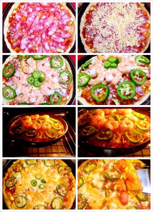 鲜虾广式腊肠披萨做法步骤