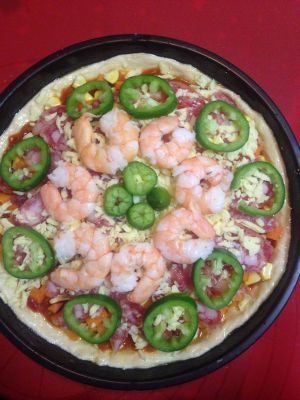 鲜虾广式腊肠披萨