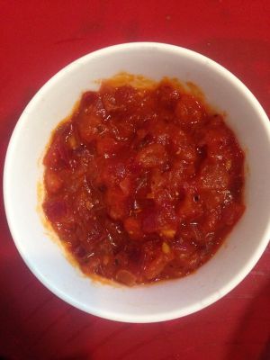 热锅,倒入适量花生油烧热,小火下洋葱翻炒熟再倒入蕃茄碎翻炒片刻然后加入适量的番茄酱撒入适量披萨草和黑胡椒碎少量盐和糖中火炒至收汁