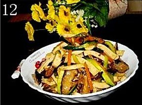 重新热油锅,放进冬菇丝爆炒半分钟;