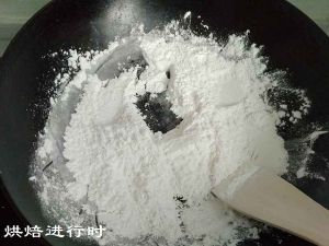 把糯米粉倒入不粘锅里,小火炒到微微变黄色,没有生粉的味道就可以了。盛出来散热备用。