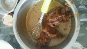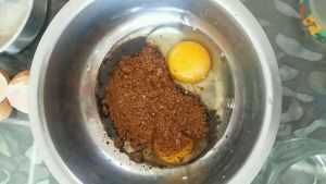鸡蛋加红糖搅拌均匀。红糖最好提前碾碎弄细一点,不要问我为什么,手好酸T_T