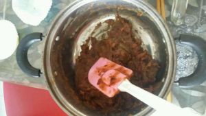 红枣用水煮十分钟左右。水基本完全吸收。枣化开,压成枣泥。