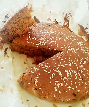 拌好的面糊倒入膜具,震动几下,震出大气泡,撒上白芝麻,预热烤箱,170度,30分钟。根据自己烤箱调节。