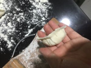 包好后就可以热水煮沸起锅煮饺子里,锅里饺子下锅前水里可以放些少许盐防治饺子下锅粘连哦。