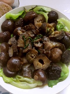 下小量的水,以浸到材料的面为准,下2茶匙蚝油,1茶匙酱油中火炆10分钟转小火炆20分钟左右。