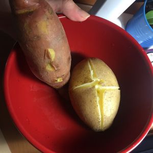 把土豆横竖画个十字 正背面都要 而且要连起来 然后丢水里就好。当然为了不浪费资源也可以同时蒸蒸红薯煮煮鸡蛋神马的。