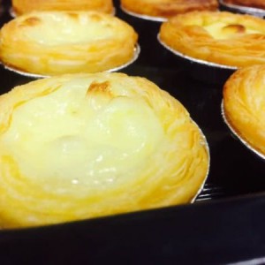 挞皮起层,挞心出现黑色焦斑就可以出炉了