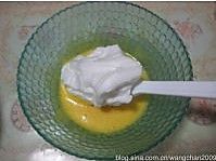 蛋黄加糖隔热水打发,混合湿性蛋白