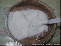 加入油混合均匀,入烤箱,轻震几下,中上层,190度20分钟