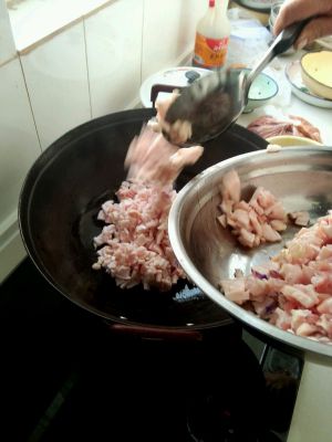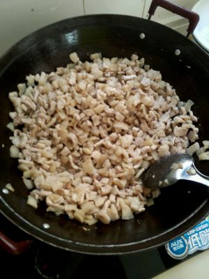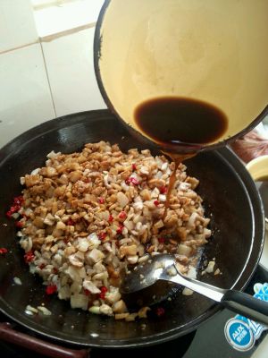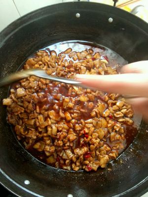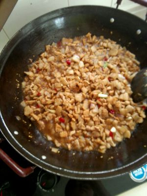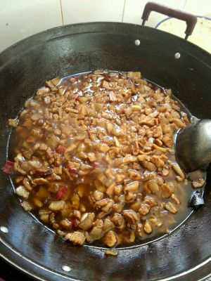 炖至水量很少时,加盐,炒一会后,倒入刚开始的熟油