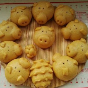 用湿筷子沾黑芝麻粘头上做眼睛。萌萌的小猪做好了,可爱吧!