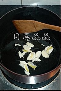 热锅,放一汤匙色拉油,中火,爆香蒜片.