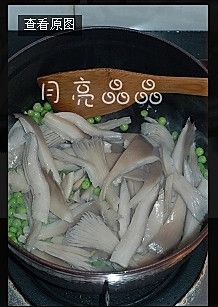 豌豆洗净沥干水分,平菇浸泡洗净撕成片,大蒜去皮切成片。