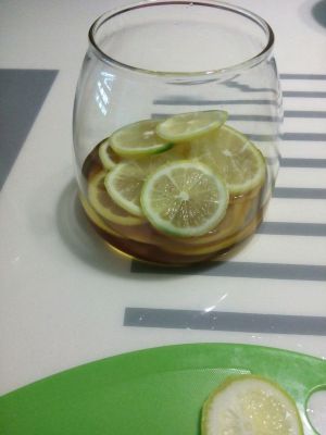 柠檬清洗干净,冰冻1个小时,拿出来切片