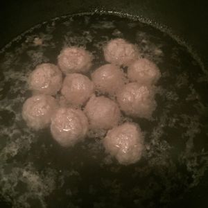 下水煮丸子。水温始终掌握在80度,看锅底冒小泡就可以了。目的是保持弹牙的口感,沸腾了就不劲道了。