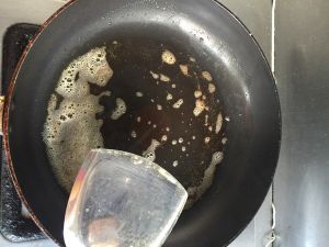 第二步:把锅烧热,放入黄油,然后切好丁的放入锅中煸炒熟。把炒熟的五彩丁盛出来备用(忘了拍照了)