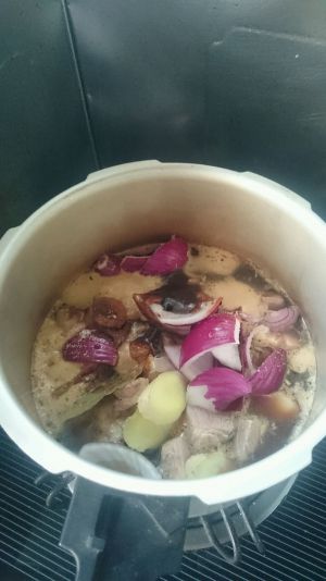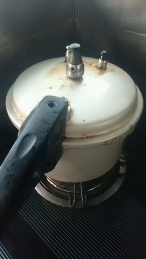 入高压锅,除盐以外调料通通入锅,盖盖,点火