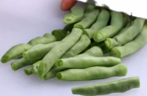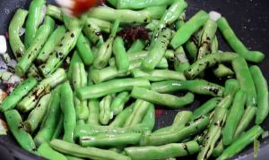 茄子切成长条备用,豆角摘去两头,切成两指长的小段。