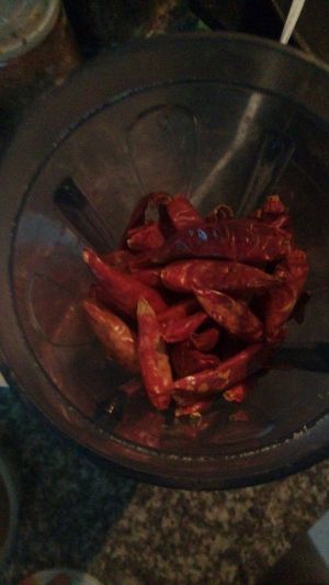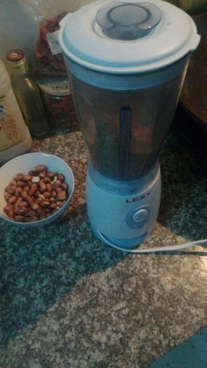 准备好所有材料,去吃料理机,把把煸炒好的花椒,麻椒,盐,放凉的花生一起打碎