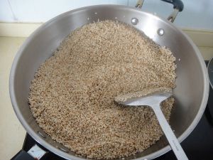一直炒到锅内有劈啪响声,用手指能轻松捏碎后熄火