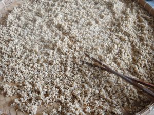 倒入大一点的盆里,用筷子迅速划散