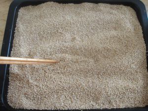 倒入盆内注入清水把浮起的芝麻全部去掉