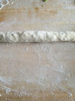 切成五公分左右的剂子,刀口朝上压扁,再醒半个小时左右