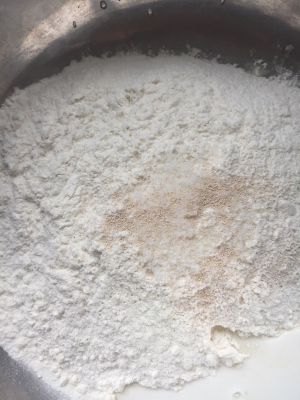 面粉,少量的白糖,盐,酵母,牛奶,水和成面团