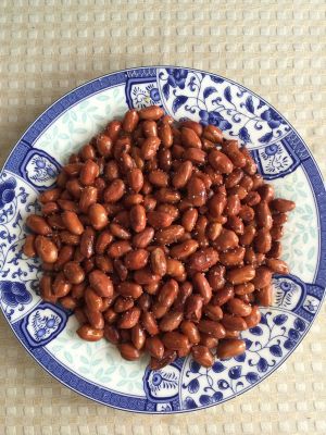 关火后可以装盘,为了美味,可以在花生米上撒些食用盐。可以保持花生脆度哦