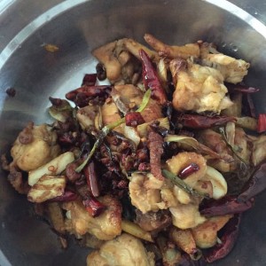开火下油,待油8分热时下鸡,待鸡块成金黄捞起过油,把所有配料下进油锅里,待配料炒香闻到辣呛味就把已经过油了的鸡下锅,待炒2分钟后加适量生抽,然后伴均匀上碟开吃!