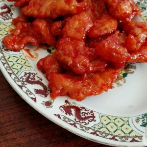 锅中留底油,放入番茄酱,糖,翻炒,再放入白醋,下入炸好了的里脊肉,快速翻炒均匀即可出锅。