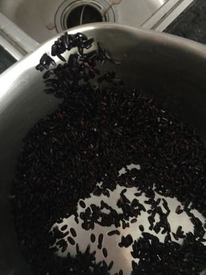 黑米提前二小时泡好,泡好的水别倒了,留着熬汤。
