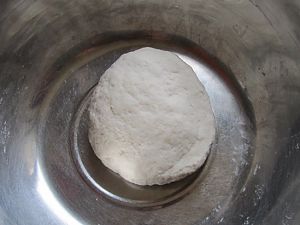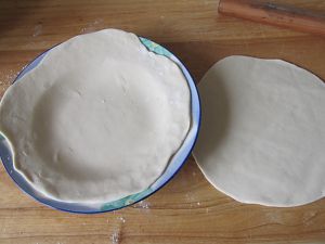 取一个凹陷的盘, 将面团擀成圆盘大小的面皮;(我面食做的少, 擀皮也不行, 不圆, 哈哈)