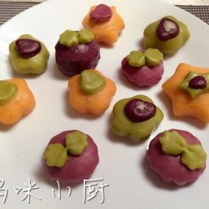 紫薯南瓜去皮切块上锅蒸熟后 按压成泥,菠菜洗净 料理机打泥