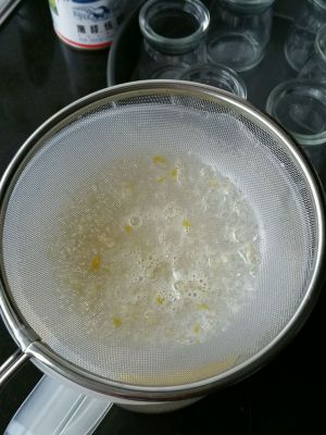 将牛奶蛋液过筛后静置一会,这步不可以省略(要不做出的布丁里面会有小泡泡)