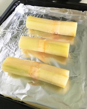 烤好的甘蔗再切成小段,就可以吃了,如果喜欢喝甘蔗汁,还可以榨汁后饮用哦!大人小孩皆宜!