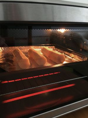 烤箱上下火200度预热之后,将甘蔗放入烤箱中上层,时间设置为25分钟。