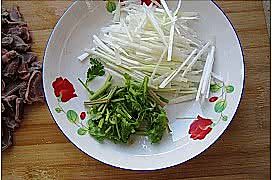 大葱切丝,香菜切段;