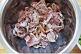 煮好的鸡胗,捞出后用凉水冲洗(想吃柔软口感的省略此步,过凉是为了让鸡胗的口感更脆);