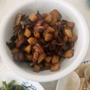 肉洗净切3-5厘米的方块,用凉水放生姜煮开,加醋和料酒煮2.3分钟捞出,我省略这一步骤的图片
