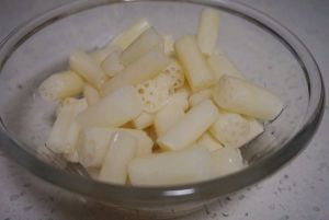 由于所在城市找不到藕带,只得网购。买到的是切好的塑封藕带。