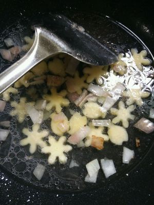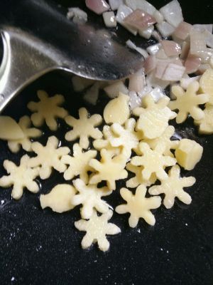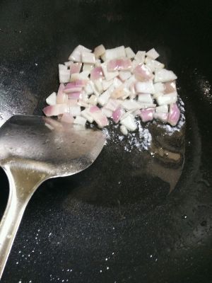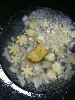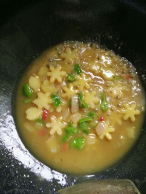 过八分钟,放咖喱,盐,味精,边搅拌着