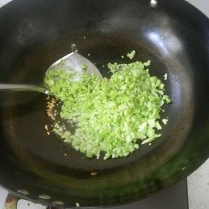 加适量油适量姜爆香。加入苦瓜丁适量盐翻炒
